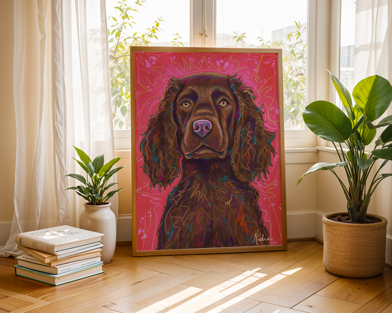 Boykin Spaniel Dog Art Print, Pet Art, Maximalist Art, Dopamine Decor, Trendy Colorful Wall Poster