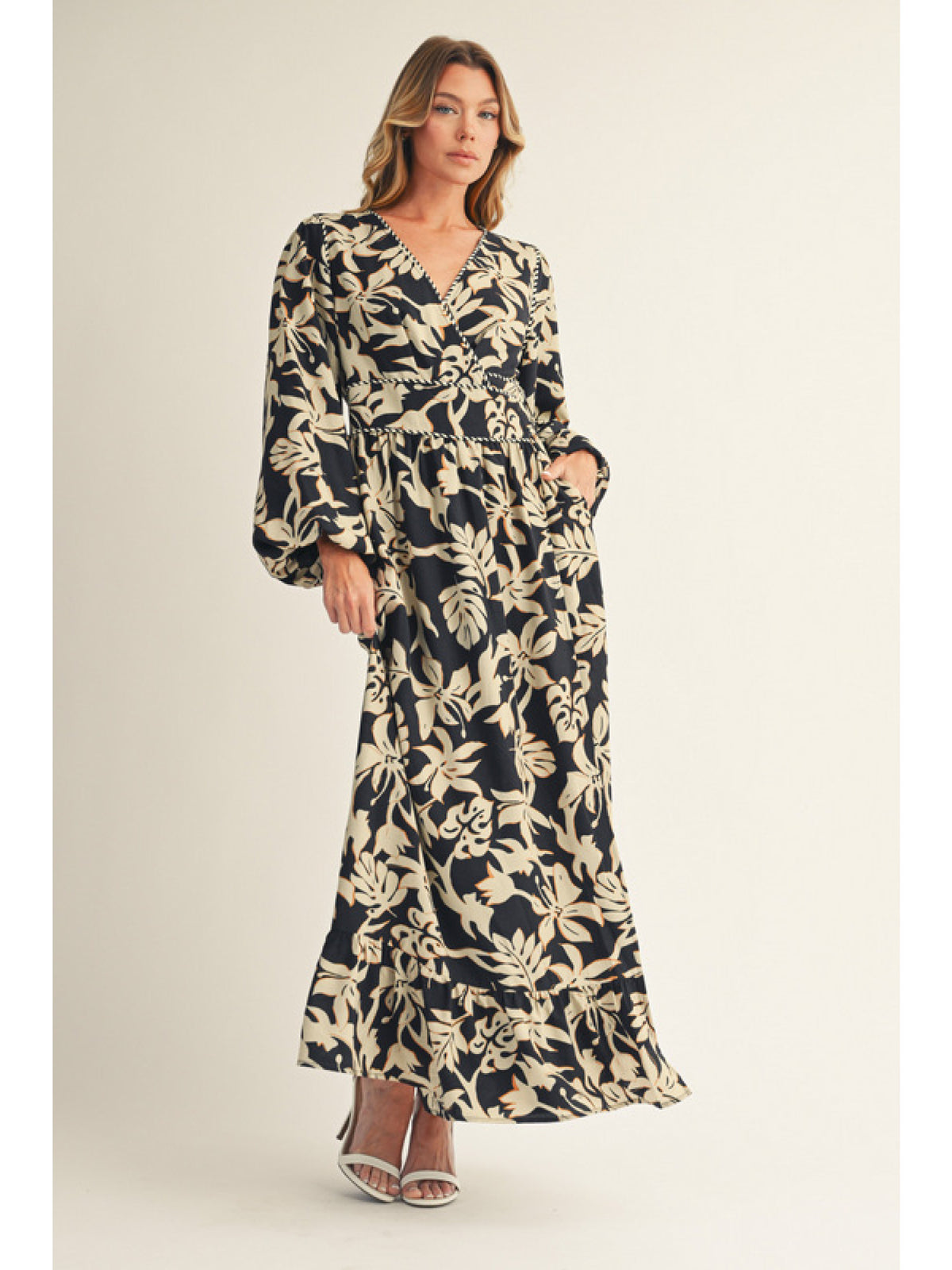 The side pockets add functionality without sacrificing style, while the soft flow of the fabric ensures you’ll look as comfortable as you feel. Perfect for weddings, holiday parties, or simply elevating your everyday, the Enchanted Petals Maxi is your new wardrobe classic.