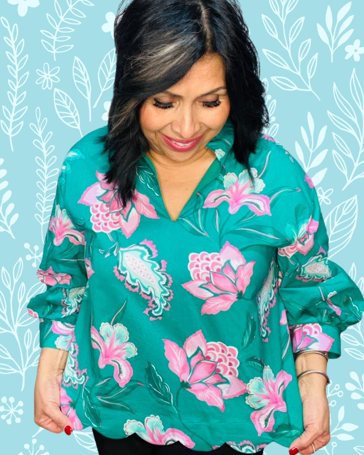 If you're looking for a feminine puff sleeve blouse, a green floral spring top, or an effortlessly chic boutique blouse, this piece checks every box.