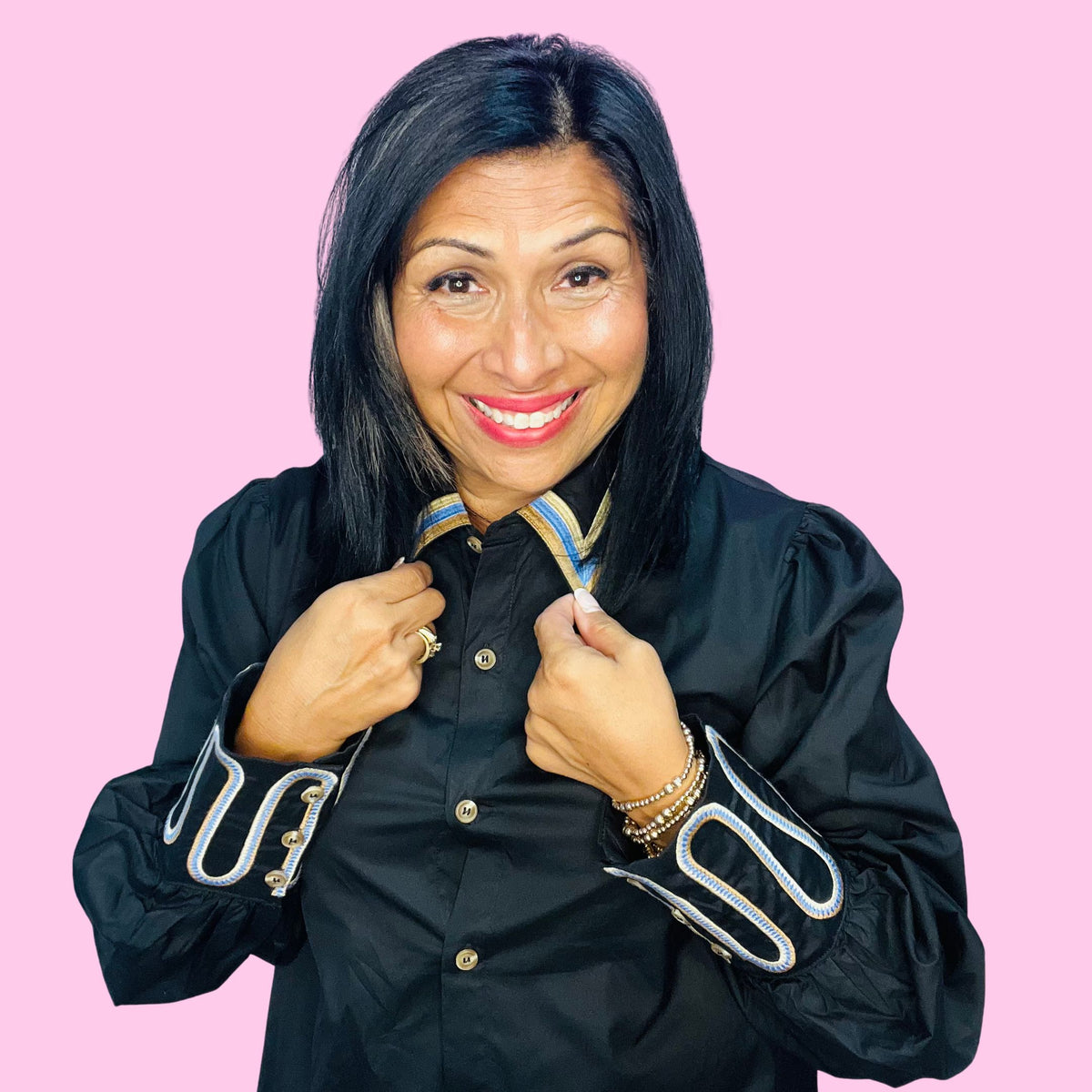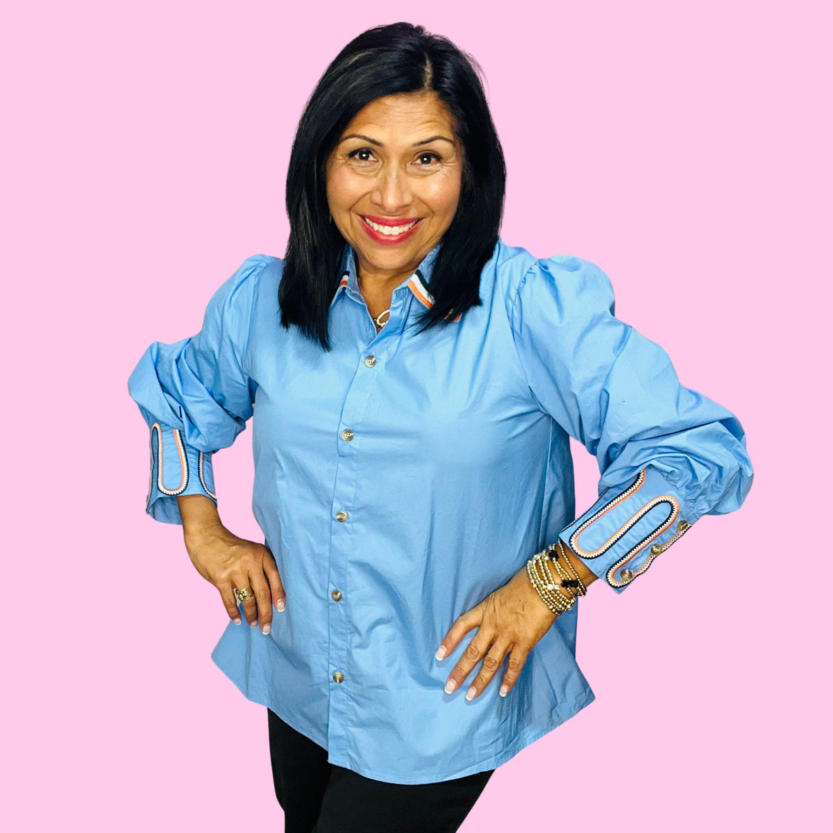 Saddle up, style queen — the Giddy Up Glam Top is here to bring bold western flair with a chic twist. Featuring puffed long sleeves, a sharp button-down front, and embroidered cuffs that are full of personality, this top is made for the modern cowgirl who doesn’t mess around when it comes to fashion.