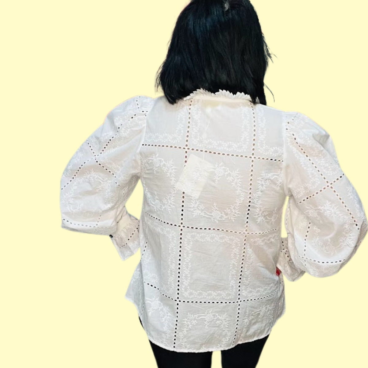 If you’re searching for a romantic embroidered blouse for women, a vintage-inspired eyelet top, or a feminine ruffle neck blouse for dressy occasions, this piece delivers timeless elegance.